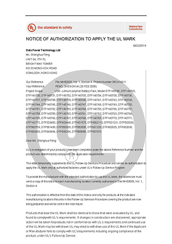 認(rèn)證服務(wù) 16年的400+電池專項(xiàng)認(rèn)證型號(hào)累積 UL證書? CE證書 CB證書 KC證書? PSE證書 ROHS證書 MSDS證書 BIS證書 IEC62133證書 探廠服務(wù)東莞德泰能源歡迎您前來(lái)驗(yàn)廠,我們竭誠(chéng)為您服務(wù)